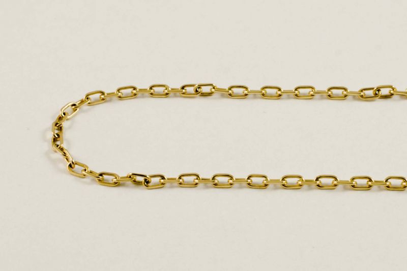 Łańcuszek dostępny w różnych długościach i kolorach złota.